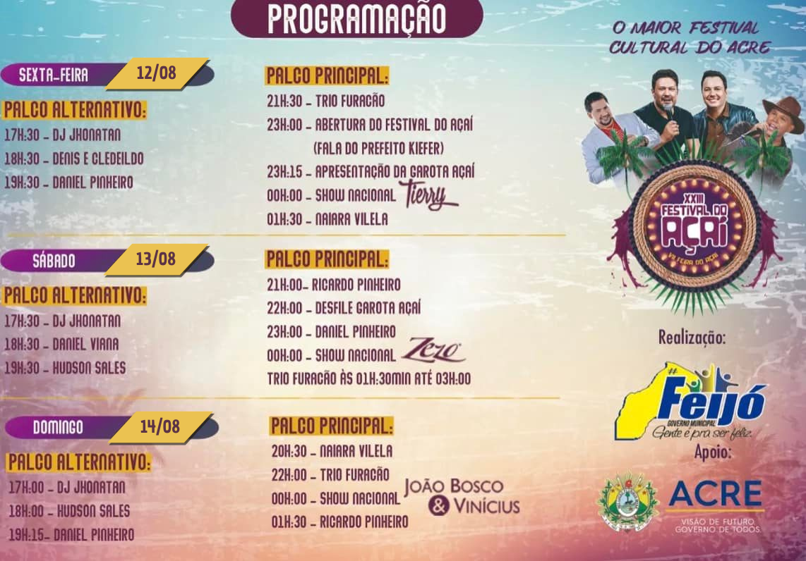 Prefeitura de Feijó anuncia que 24° Festival do Açaí ocorrerá nos dias 18, 19 e 20 de agosto